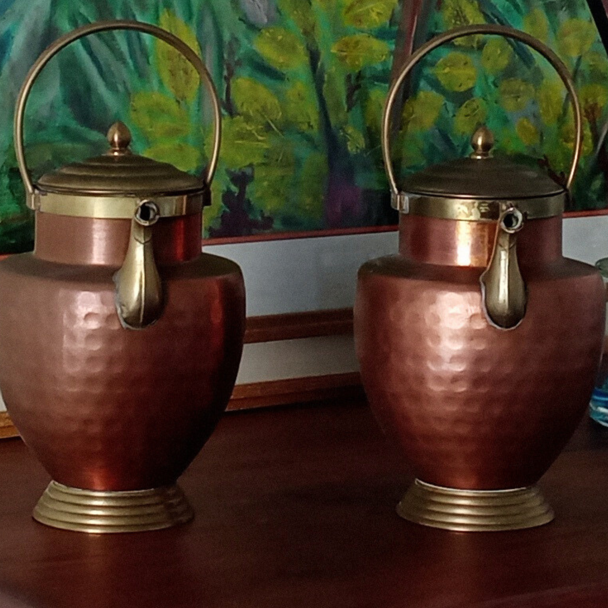 Coppia di Mezzina Toscana in Rame Martellato con Dettagli in Ottone – Artigianato Italiano